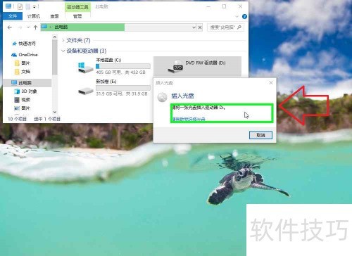1、 进入文件资源管理器,打开光驱并放入网卡驱动光盘。