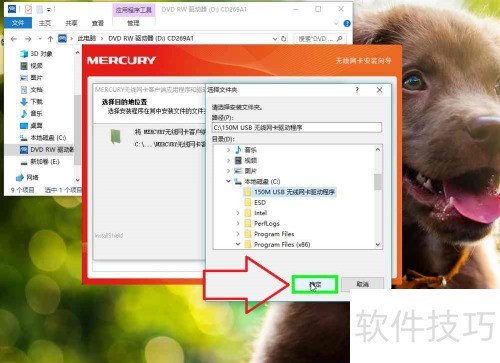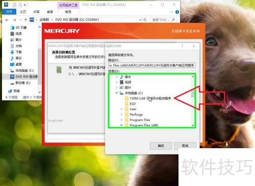 15、 在选择文件夹中,用鼠标左键点击150M USB 无线网卡驱动程序(树项目)。