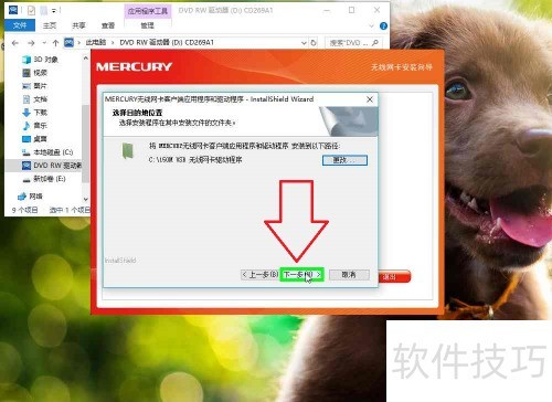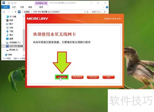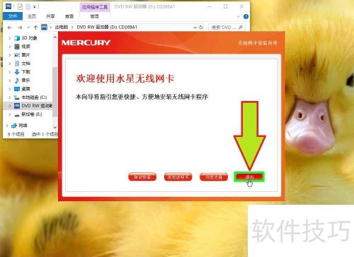 7、 插入网卡驱动光盘,通过文件资源管理器打开并运行安装程序。