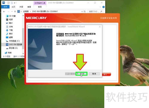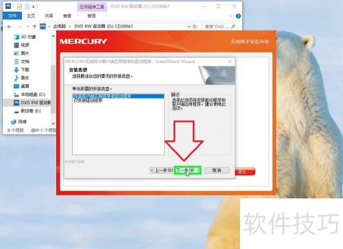 11、 在MERCURY无线网卡客户端应用程序和驱动程序 - InstallShield向导界面中,点击下一步(N) >按钮。