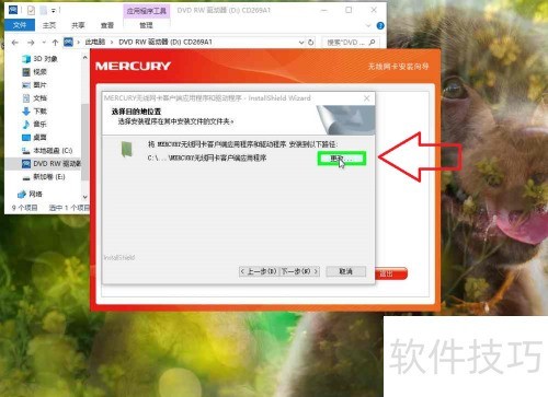 14、 在MERCURY无线网卡客户端应用程序和驱动程序 - InstallShield向导界面中,用鼠标左键点击更改...按钮。