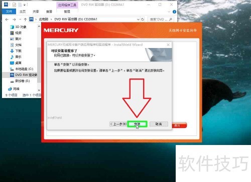 18、 在MERCURY无线网卡客户端应用程序和驱动程序 - InstallShield向导界面中,点击安装按钮。