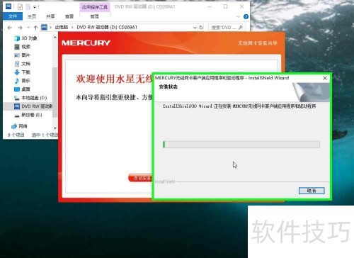 19、 MERCURY无线网卡的驱动与客户端程序正在安装。