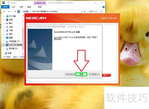 21、 安装结束后,在MERCURY无线网卡客户端应用程序和驱动程序 - InstallShield向导界面中,点击完成按钮即可。