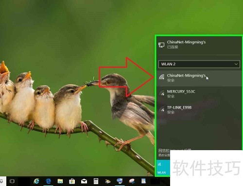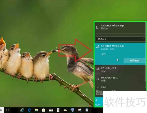 25、 在网络连接中,找到ChinaNet-Mingming的安全显示4个信号条(满格为四个信号条)选项,然后用鼠标左键单击该项目。