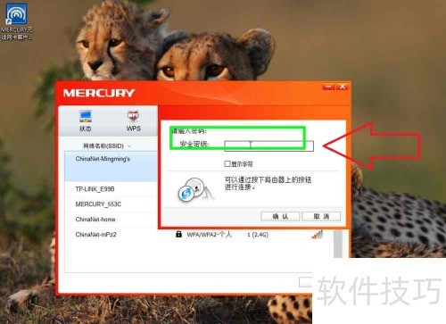 30、 插入无线网卡,打开客户端,输入密码并连接WiFi即可。