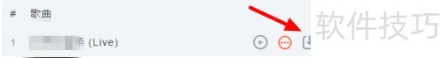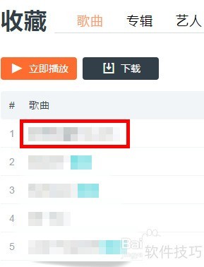 5、 将鼠标悬停在已收藏的歌曲上,四个图标随即出现,点击红色箭头指向的图标即可开始下载。