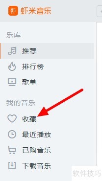 3、 在电脑上启动虾米音乐,使用同一账号登录后,点击左侧我的音乐中的收藏选项即可查看。