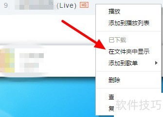 8、 鼠标右键点击歌曲,从弹出的菜单中选择在文件夹中显示即可。