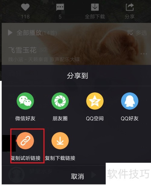 4、 打开目标音乐平台,如酷狗音乐,进入想导入的歌单,点击分享选项即可开始导入操作。