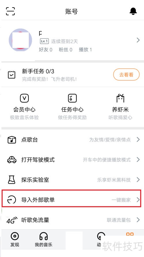 6、 打开虾米音乐,进入账号,导入外部歌单。