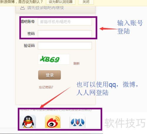 3、 可通过唱吧号或第三方账号登录唱吧。