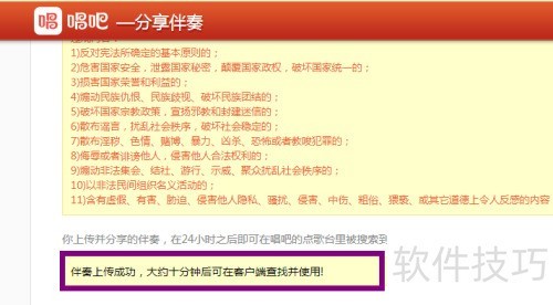 9、 上传已成功,审核约需十分钟,最晚一天内可在唱吧搜索到。