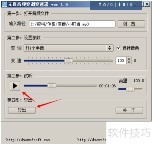 4、 暂停试听后方可导出,请先停止试听再操作。