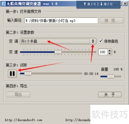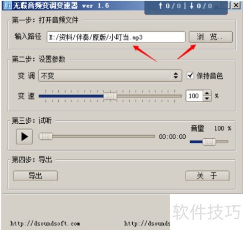 2、 打开无瑕升降调软件,点击浏览并选择该伴奏文件路径。