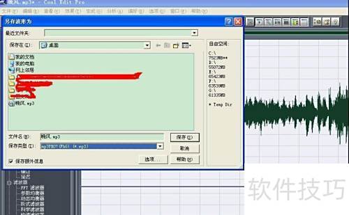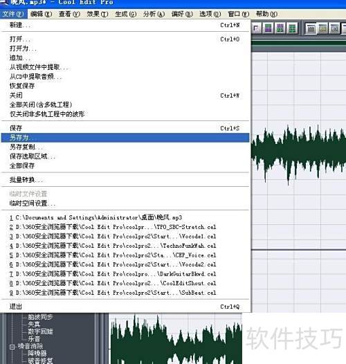 7、 完成音乐处理后,需进行保存操作。点击菜单中的另存为,选择桌面作为保存位置,便于日后查看或发送给相关人员。至此,伴奏制作的全部步骤已讲解完毕。