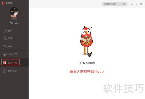 5、 在已点伴奏中输入伴奏名称,点击搜索即可找到所需内容。