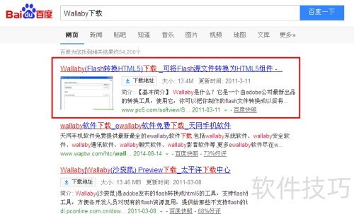 1、 在百度搜索栏输入Wallaby下载,选择其中一个链接进行下载即可。