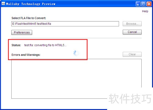 5、 导入fla源文件后,点击转换按钮,选择目标目录,确认即可完成转换操作。