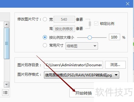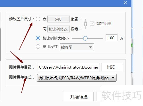 5、 调整图片尺寸、选择保存路径及设定输出格式。