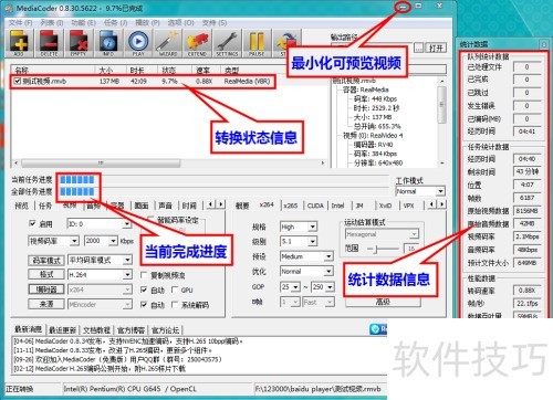 8、 以下是转换过程中的相关说明,供大家参考。此外,在最小化转换软件后,可预览已转换的视频内容。