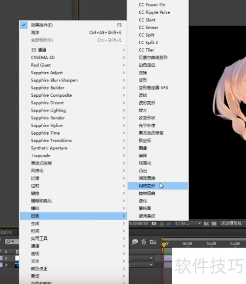 6、 根据不同时间点选择相应位置的变形效果,其余部位依此类推。