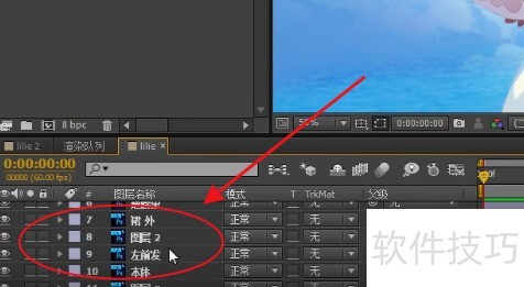 4、 在操作栏选择所需部位,点击预合成实现图片运动。