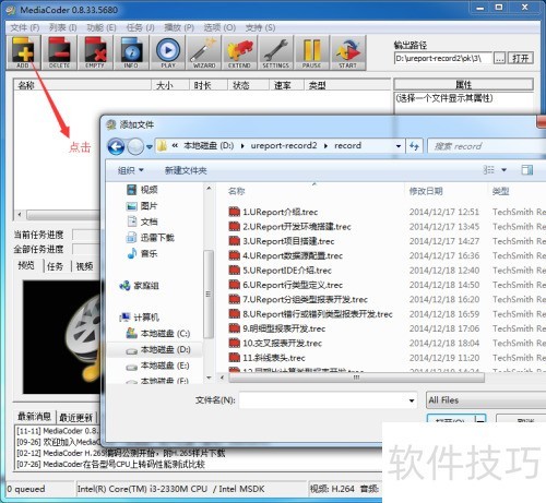 2、 点击左上角的添加图标,选择需查看的视频文件,操作所示。