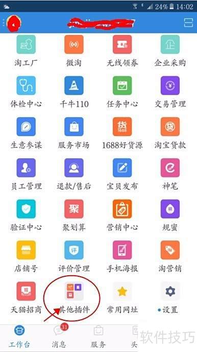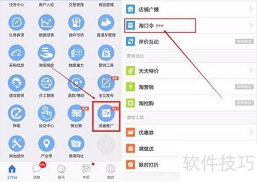 11、 注意!若工作台无流量推广图标,请点击其他插件,再选择淘口令即可。