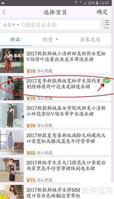 19、 挑选要推广的商品,点击后右上角出现小勾即表示已成功选定。