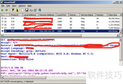 6、 SmartSniff 是一款轻巧便捷的网络监控工具,可捕获并分析 TCP/IP 数据包,适用于网络流量监测与故障排查,操作简单,功能实用。
