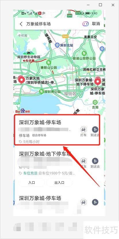 4、 点击进入你想查询的万象城,如深圳万象城停车场。