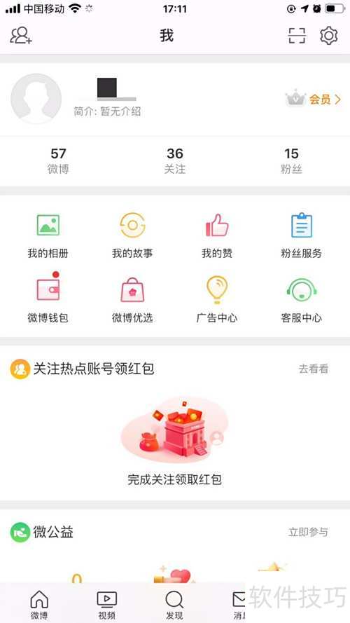 2、 打开新浪微博APP,进入主页后点击右下角我即可。