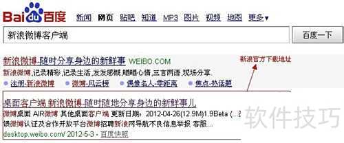 1、 搜索新浪微博客户端可找到相关下载信息