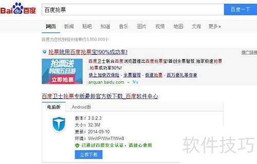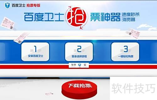 1、 在百度搜索百度卫士抢票版或访问官网查找并下载抢票版资源即可。