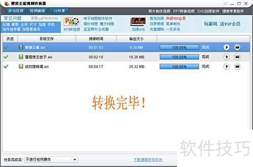 5、 转换完成后,界面将所示。点击视频文件右侧的小三角按钮即可播放,点击文件夹图标则可打开并查看已转换的视频文件。