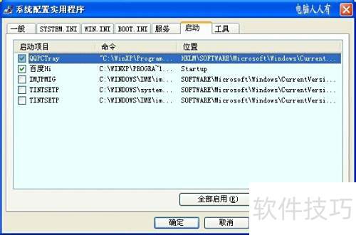 2、 运行中输入 msconfig,回车后进入系统配置,点击启动项,检查是否存在无用条目,取消勾选,最后确认保存即可完成清理。
