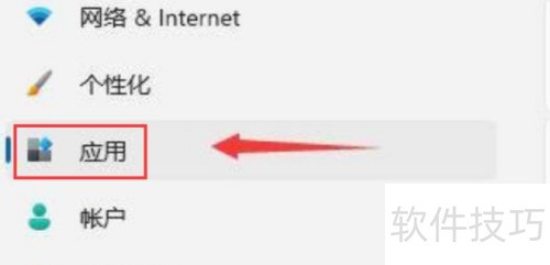 2、 在左侧功能栏中查找应用选项