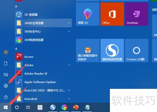 1、 开启电脑后,依次点击开始菜单和设置选项。