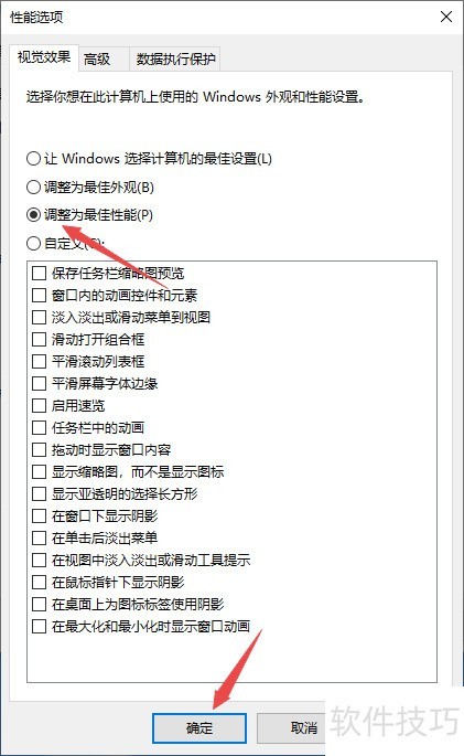 6、 选择最佳性能选项,点击应用并确认即可完成设置。