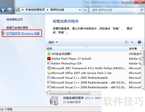 3、 进入程序与功能,点击启用或关闭Windows功能进行设置。