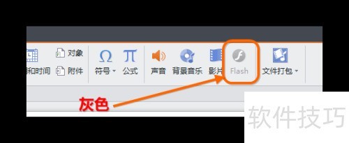 1、 所示,WPS演示中插入Flash的按钮呈灰色不可用状态。