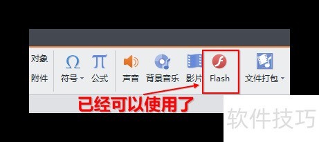 7、 安装完毕后,启动WPS演示,即可看到插入Flash的按钮已处于可用状态。