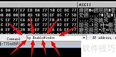 2、 接下来需加载OD,在命令栏输入 bp EnableWindow 后回车,注意区分大小写,具体操作所示。