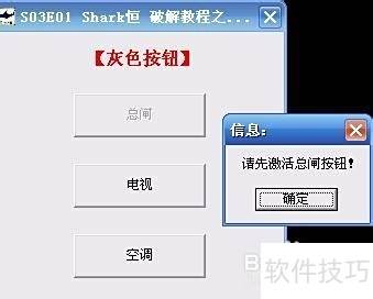 1、 软件启动后,某个按钮呈灰色无法点击。今天学习的内容是如何在不借助第三方工具的情况下处理这一问题。当点击电视或空调时,系统会提示需先激活总闸按钮。
