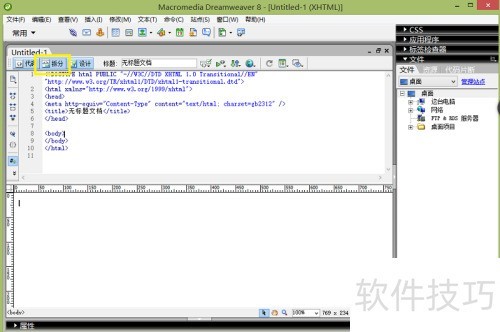 7、 若不熟悉代码,可切换至设计界面,随意输入所需文字内容。