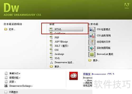 1、 启动Dreamweaver,创建新站点并建立一个网页文件。