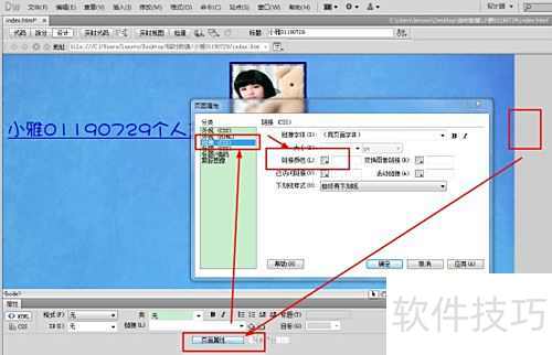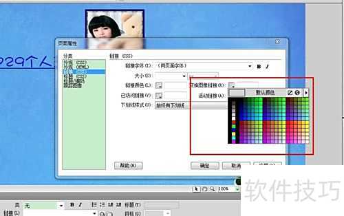 17、 点击网页空白区域,进入页面属性,设置活动颜色与变换图像链接。