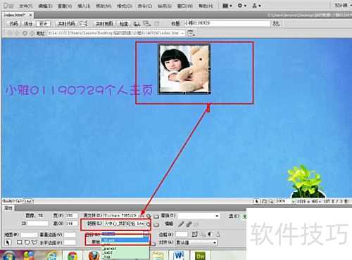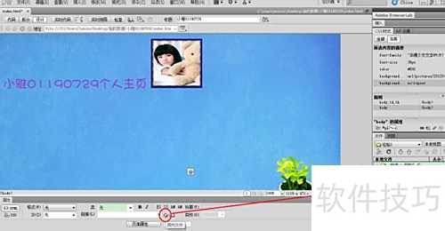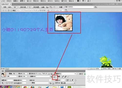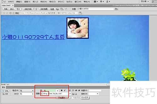 6、 插入图片后,调整其位置和大小,选中图片,在下方属性面板中设置所需链接的网页地址。