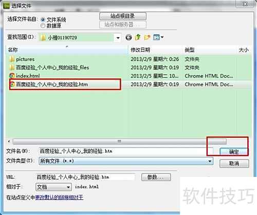 3、 在网页编辑时,先输入文字并选中,然后在下方属性面板的链接栏点击浏览按钮,选择目标网页文件,即可完成超链接的创建。